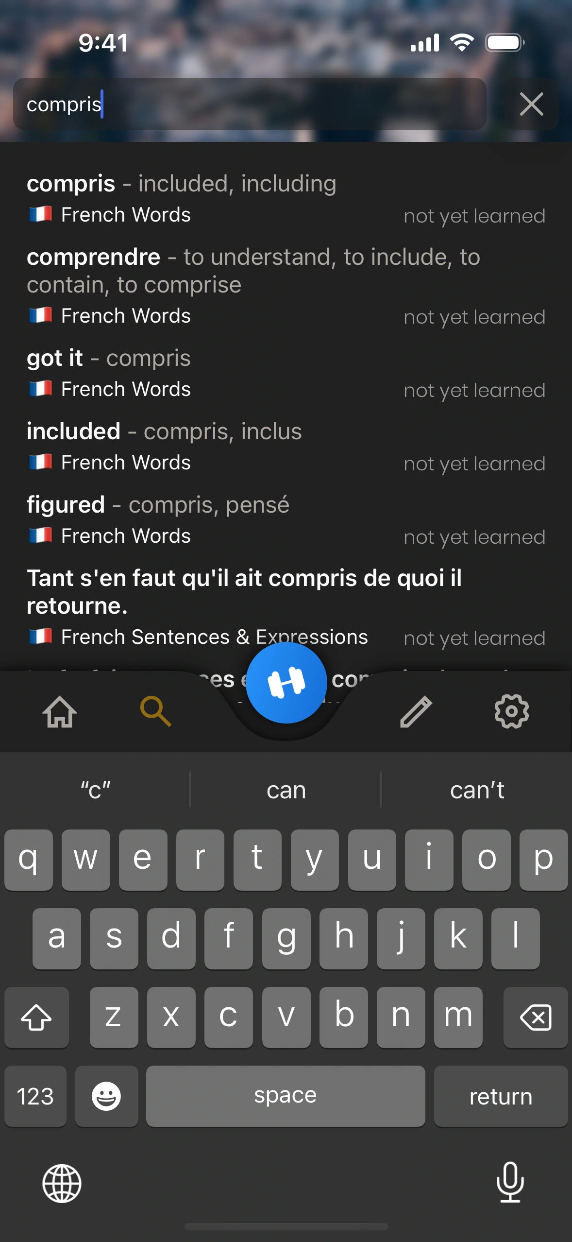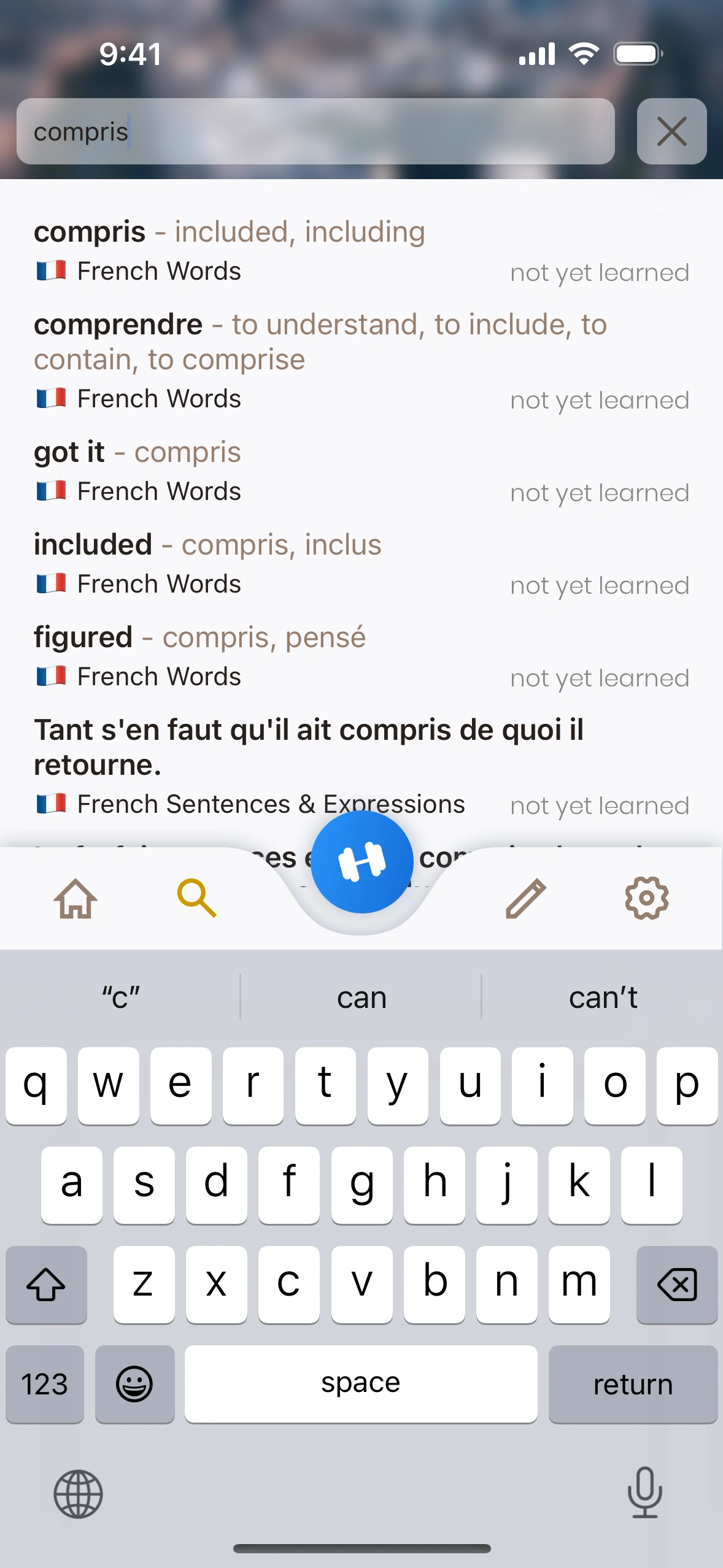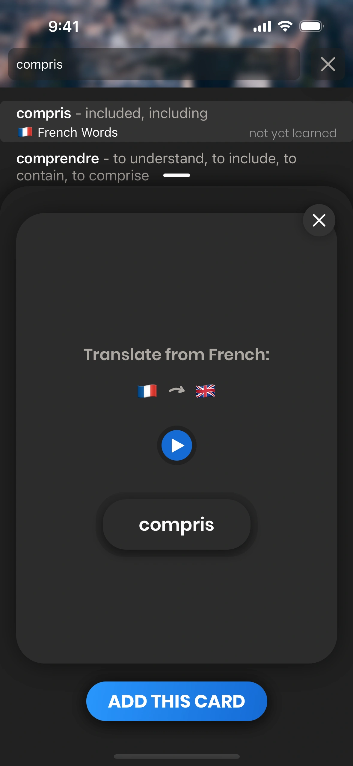Look up a word you don't know, and add it immediately to your learning queue. Just French will make sure you will never forget the word.