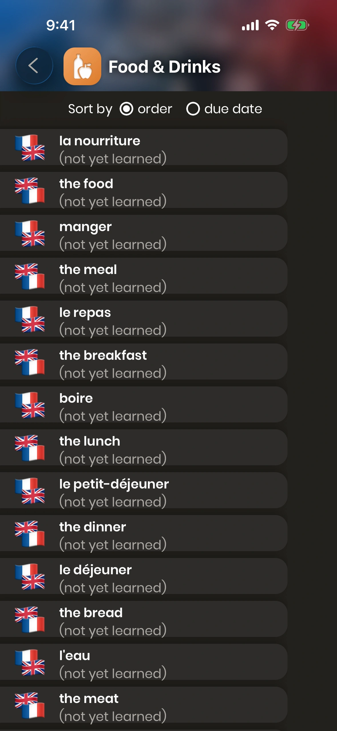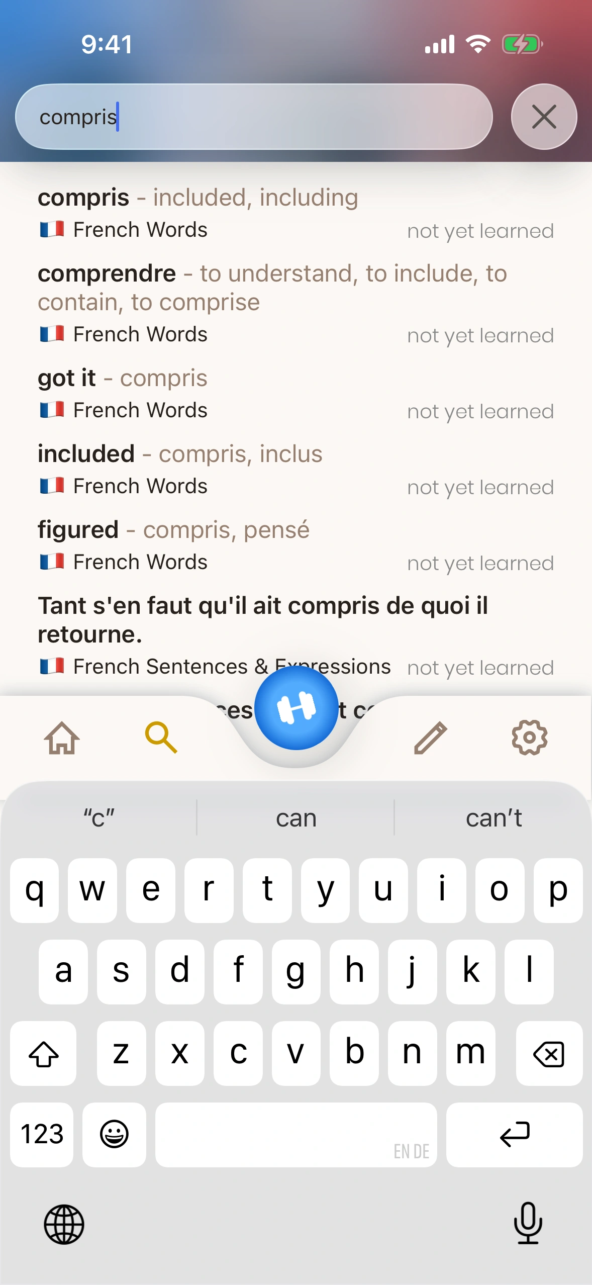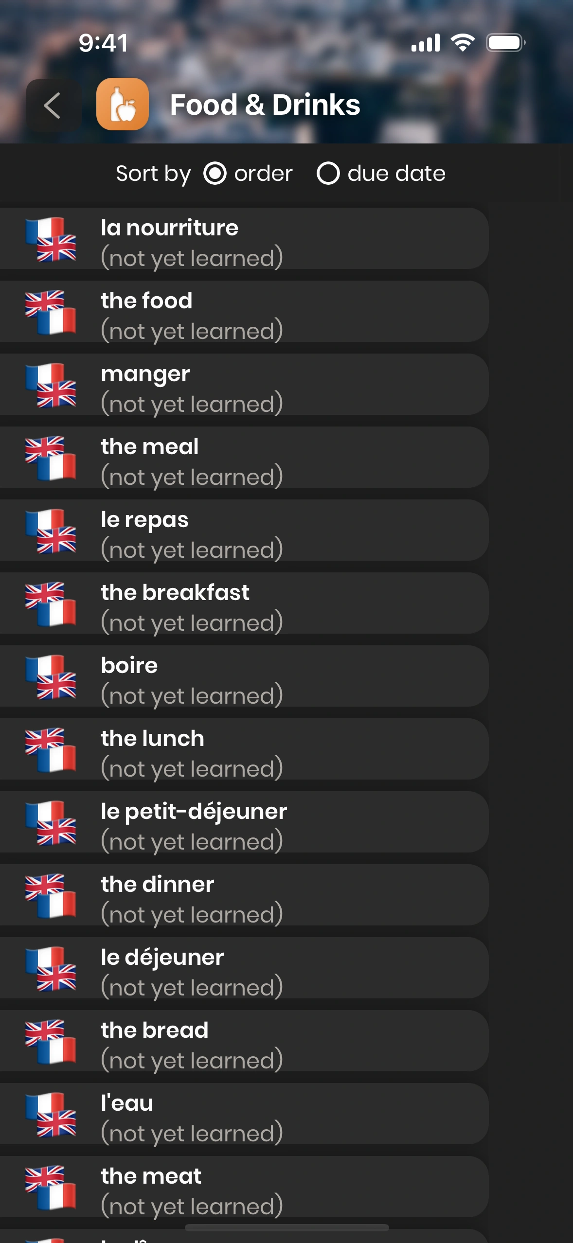 Look up a word you don't know, and add it immediately to your learning queue. Just French will make sure you will never forget the word.