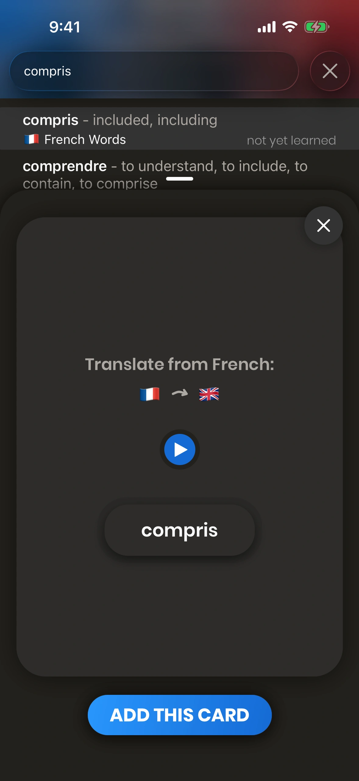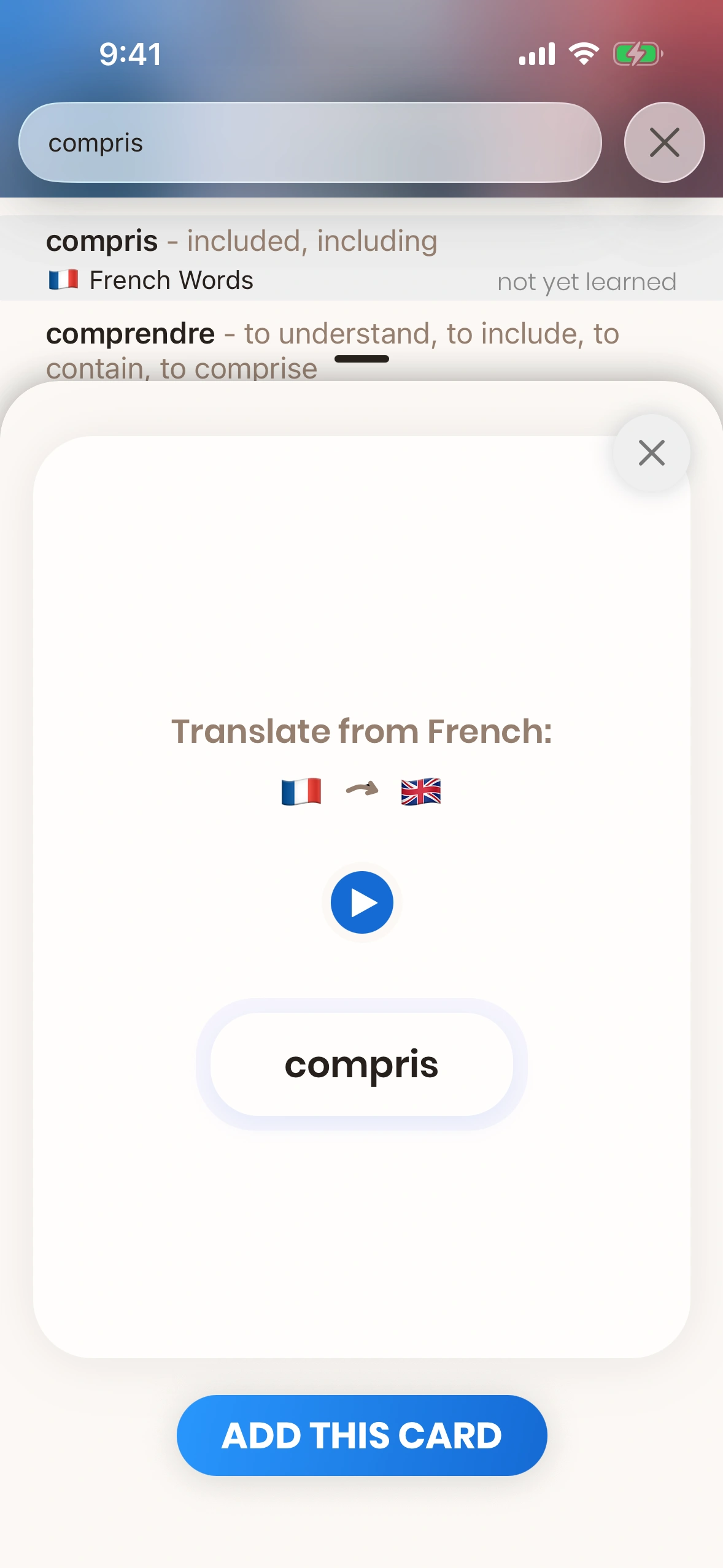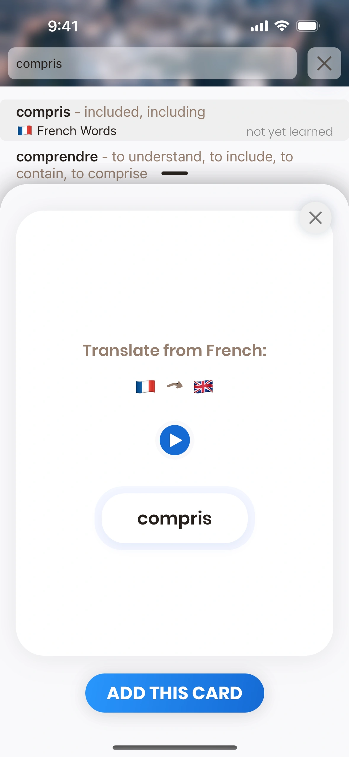 Just French lets you create your own cards too - but why not use the +30'000 high-quality cards that come with the app?
