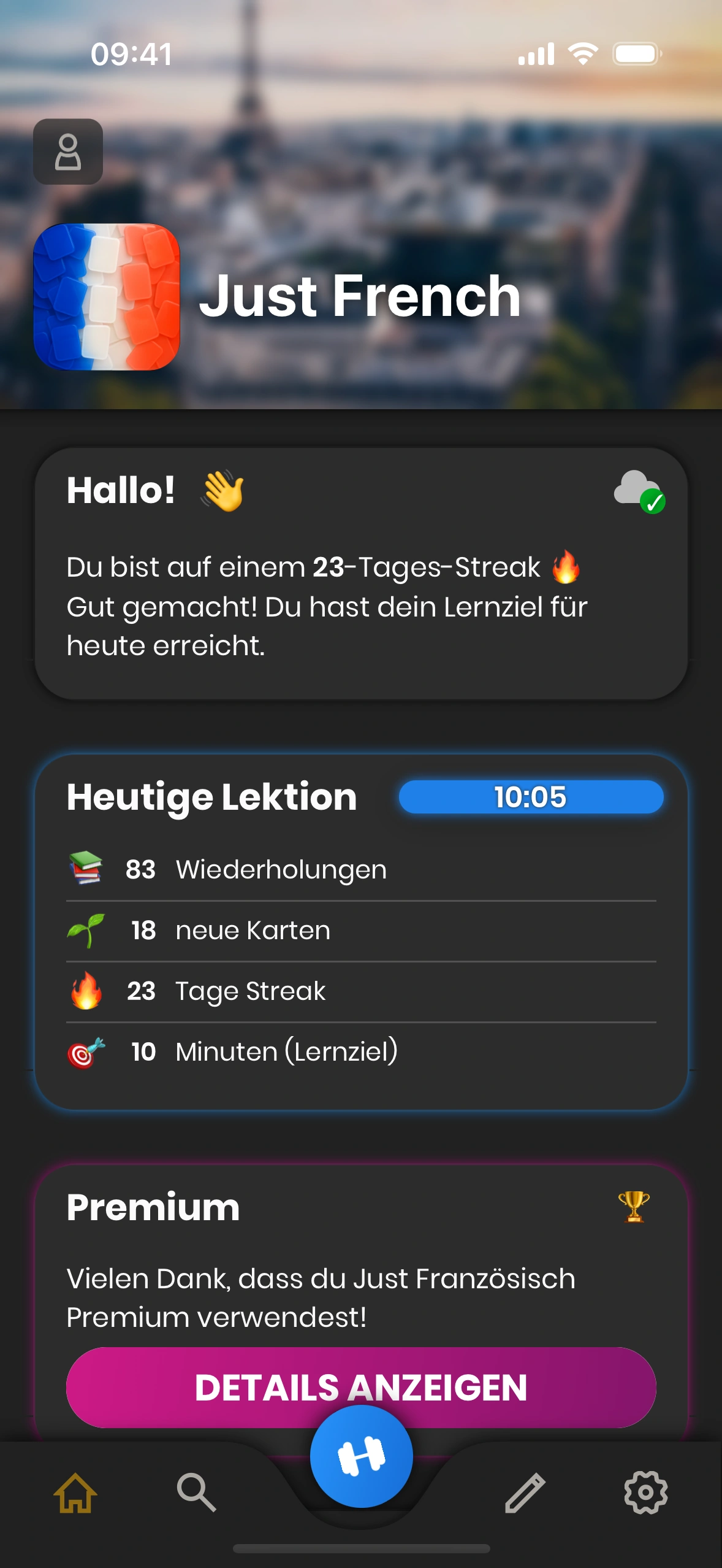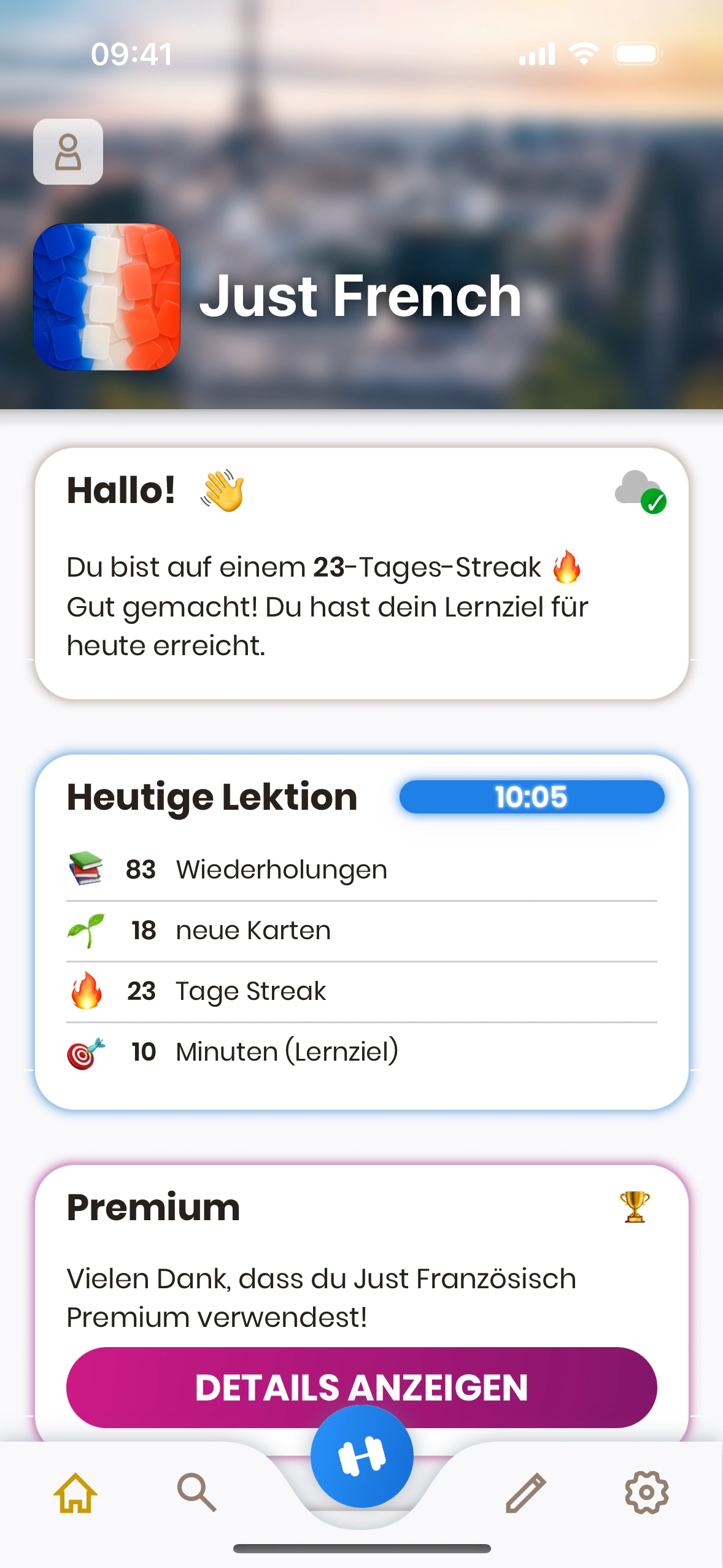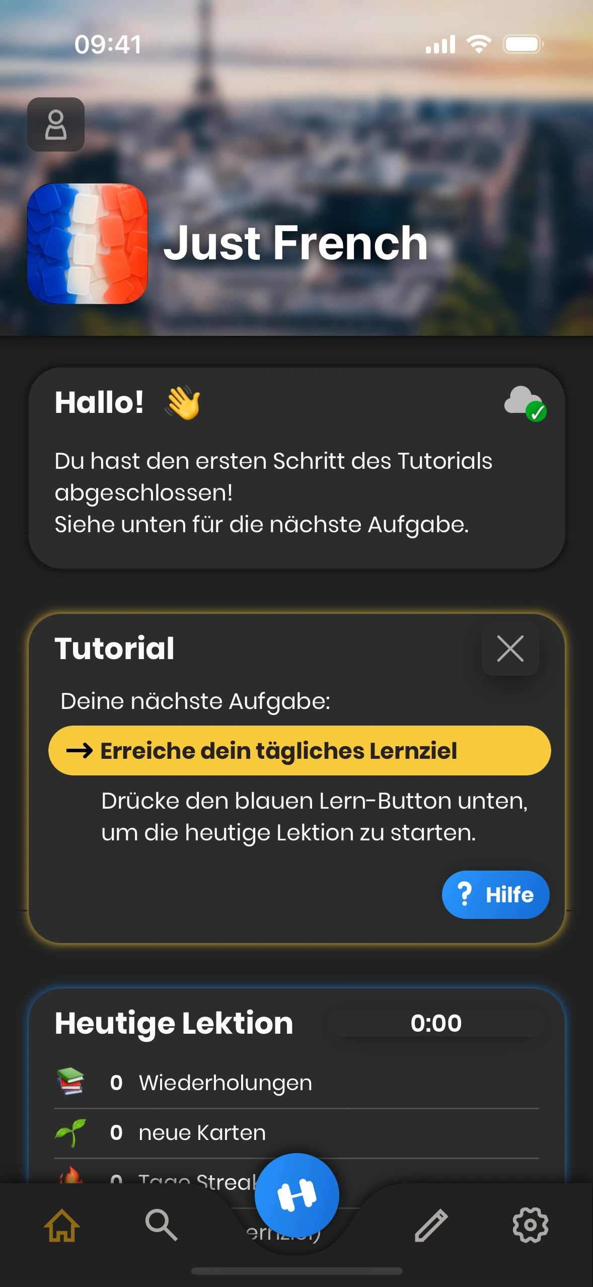 - Lernen‑Button: Startet deine tägliche Lernsitzung.