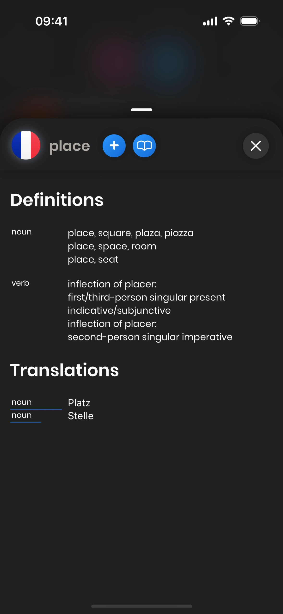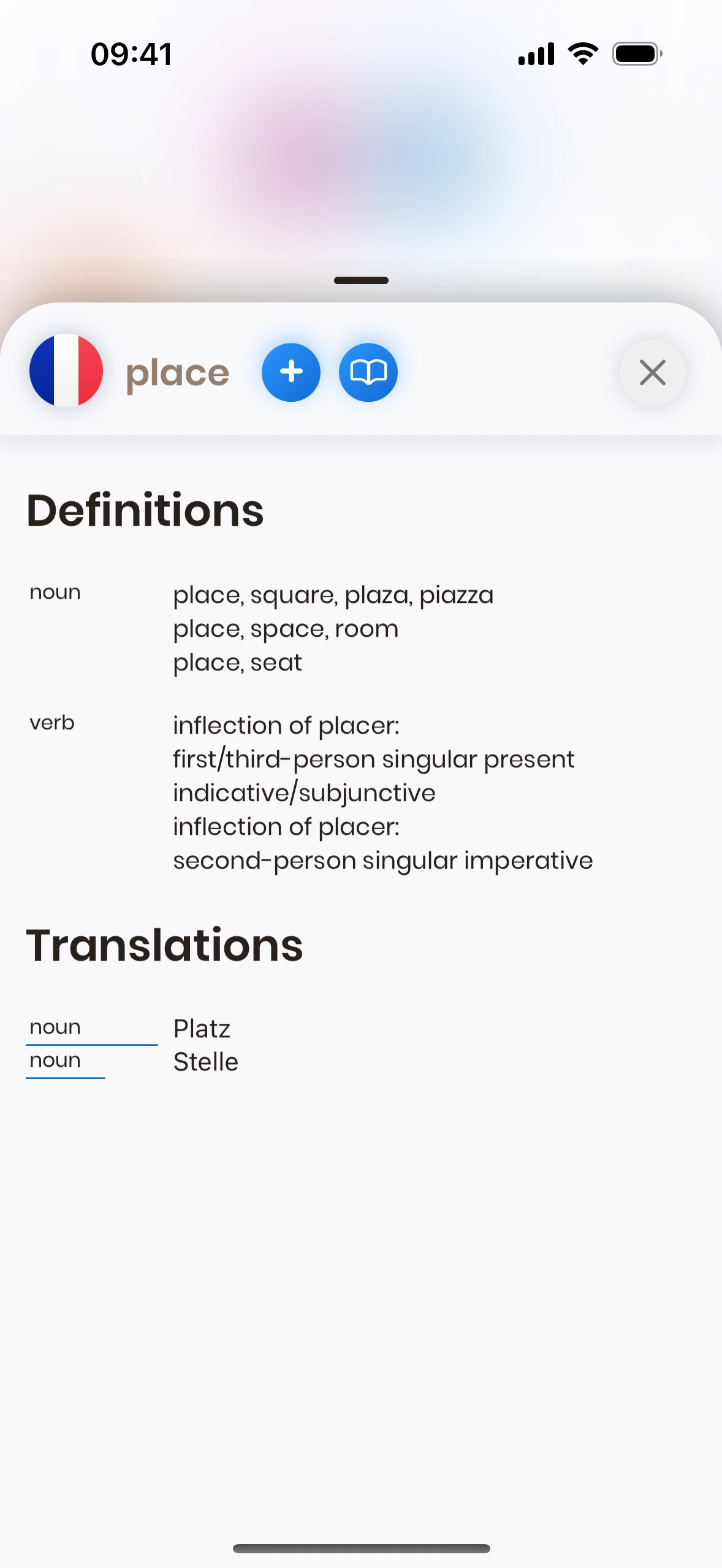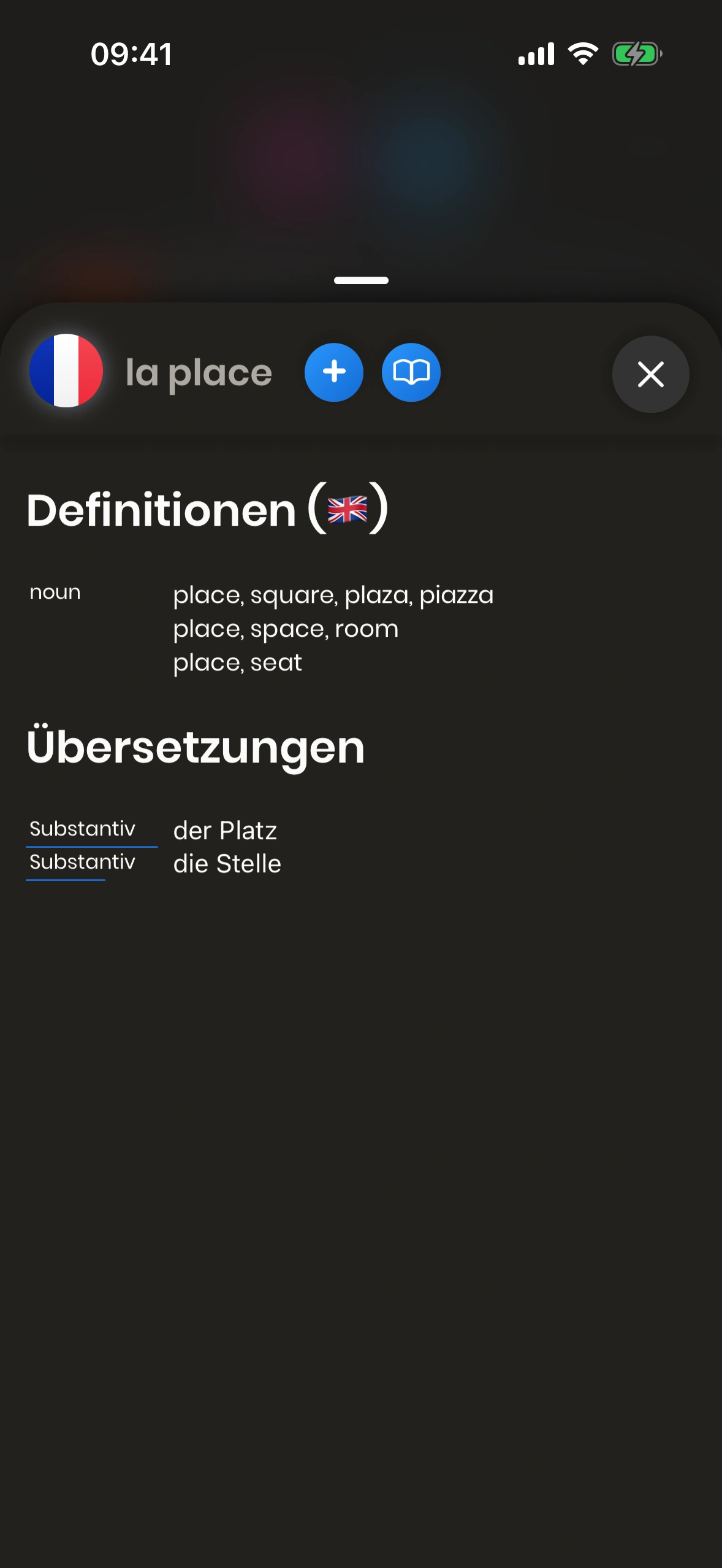 Der volle Umfang steht für Wörter der Französisch zur Verfügung; für die UI‑Sprache (Deutsch) sind die Inhalte ggf. reduziert.