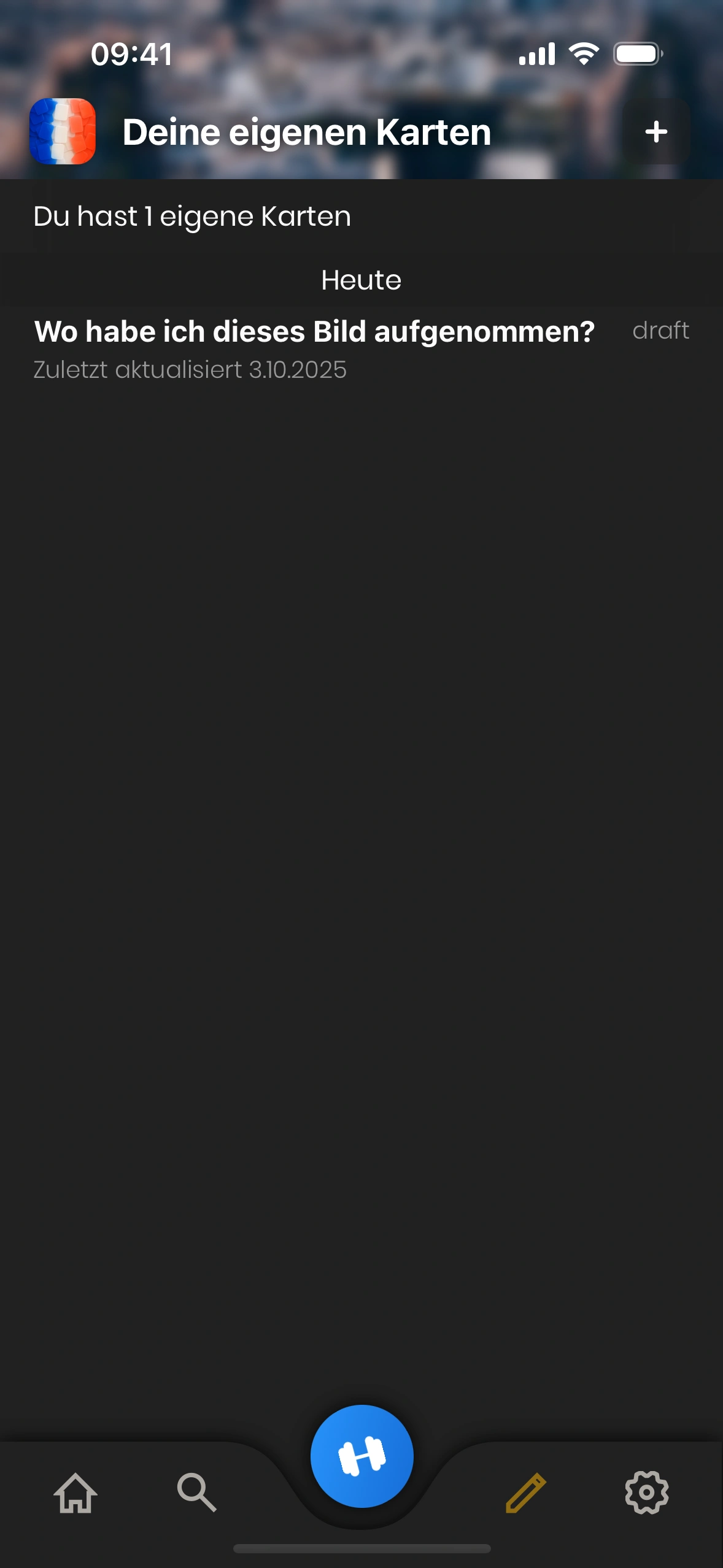 Die Übersicht der eigenen Karten wird angezeigt, wenn du unten in der Tab‑Leiste auf das Stiftsymbol tippst (1.):