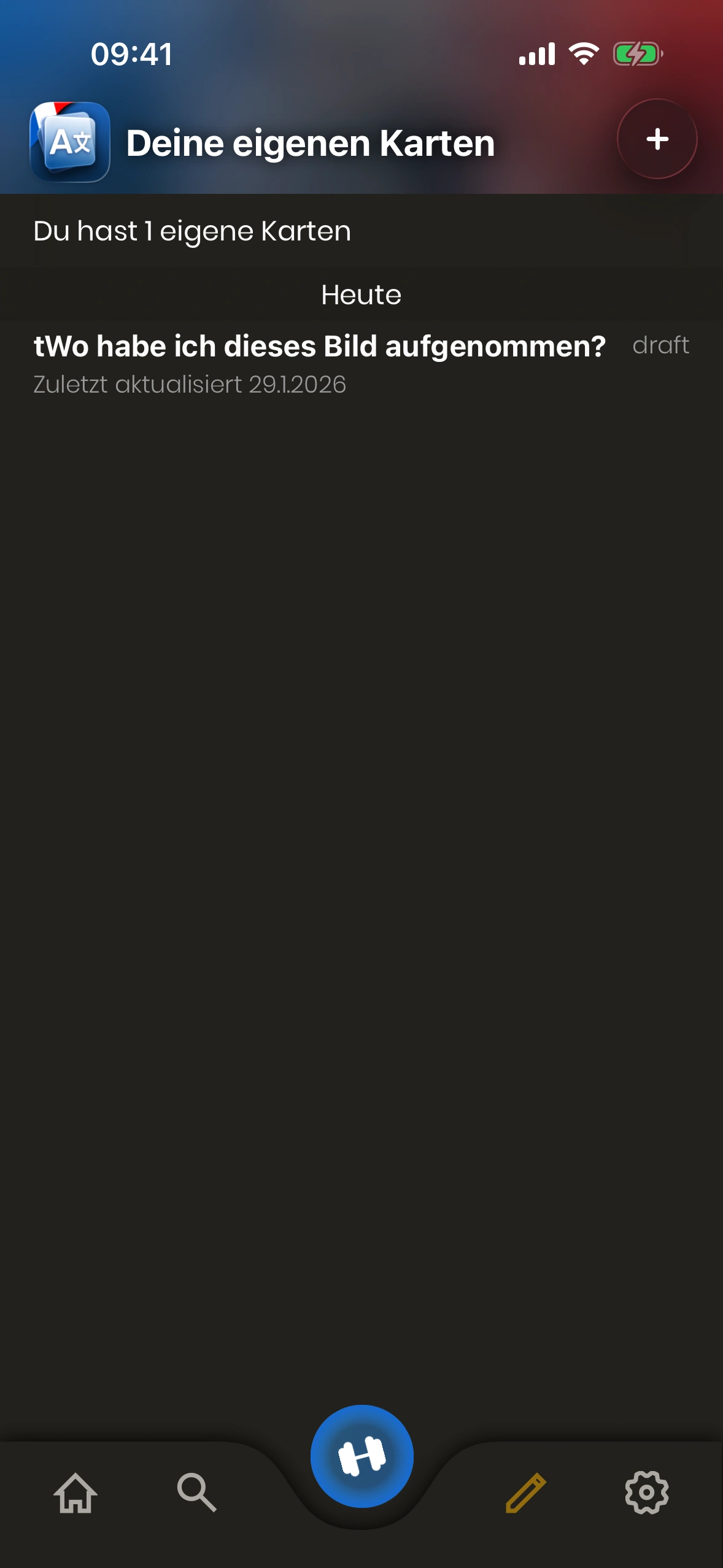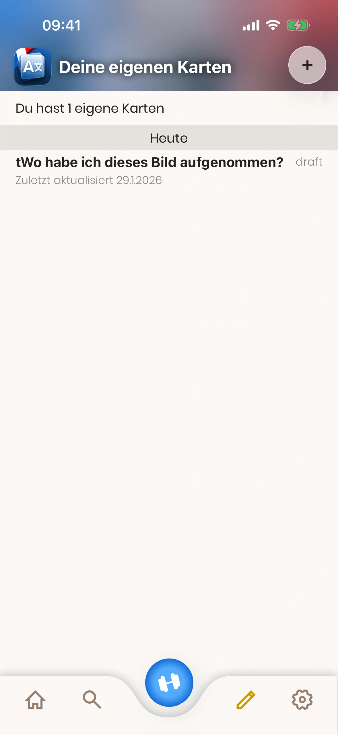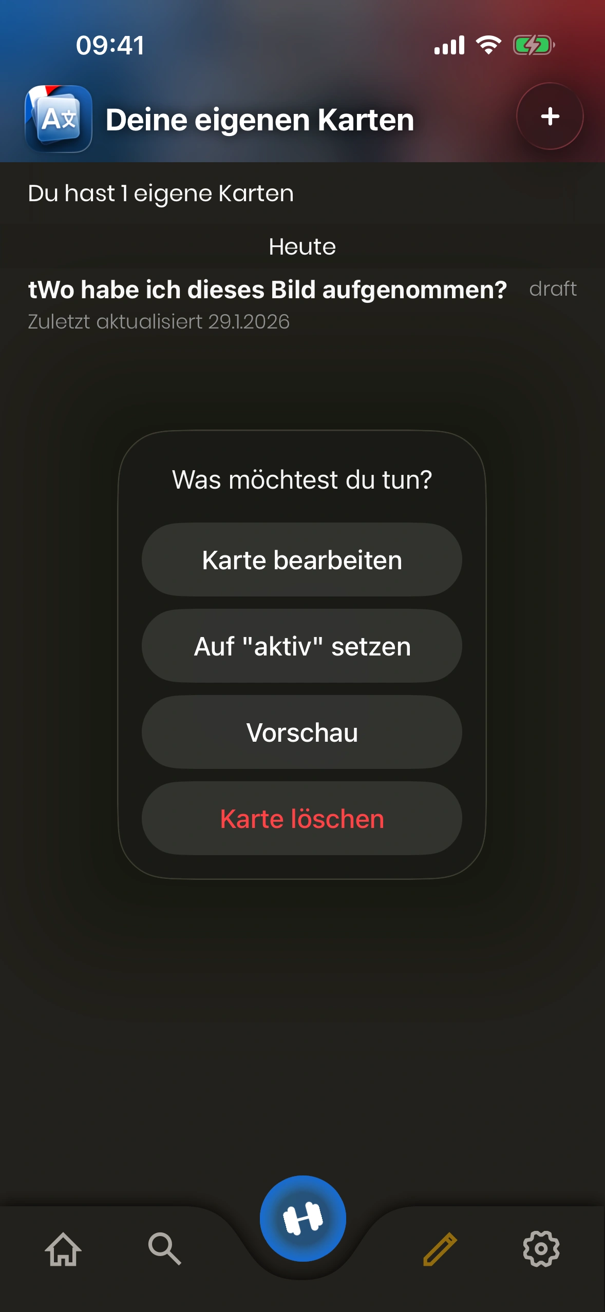 - Kartenstatus: Eine Eigene Karte ist entweder „Entwurf“ oder „Aktiv“. Entwürfe werden beim Lernen nicht gezeigt. Tippe die Karte, um den Status zu ändern.
