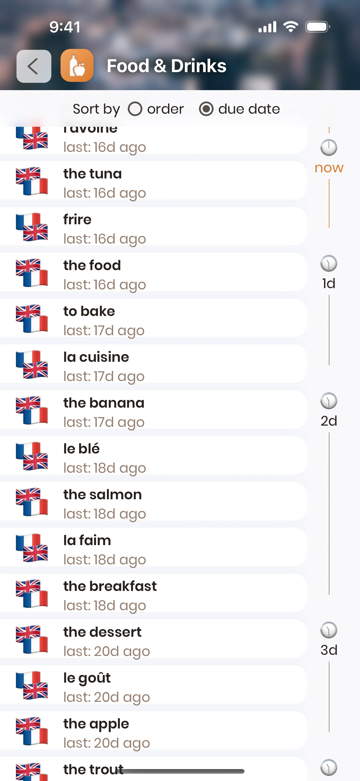 You can also tap a card in the list to view it, or to add it manually to the learning queue.