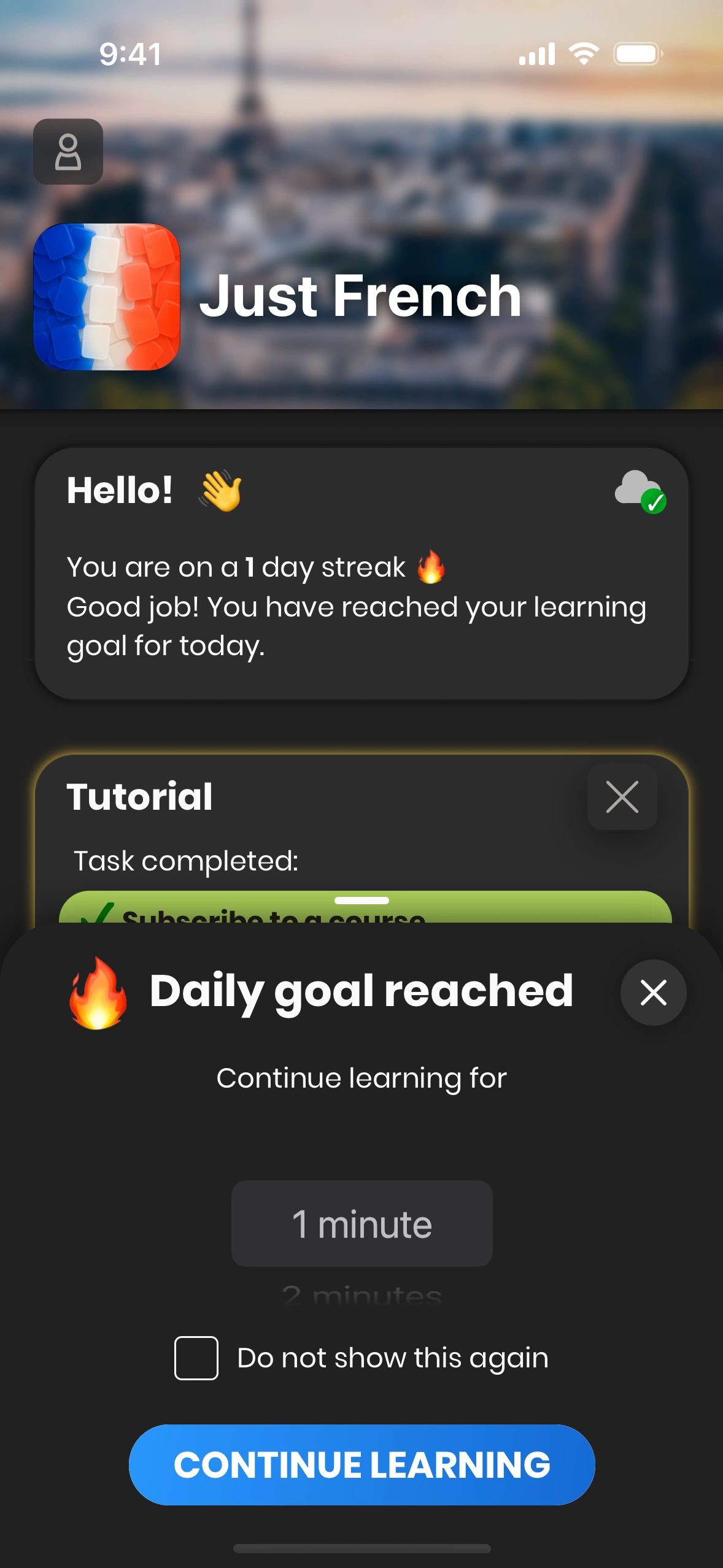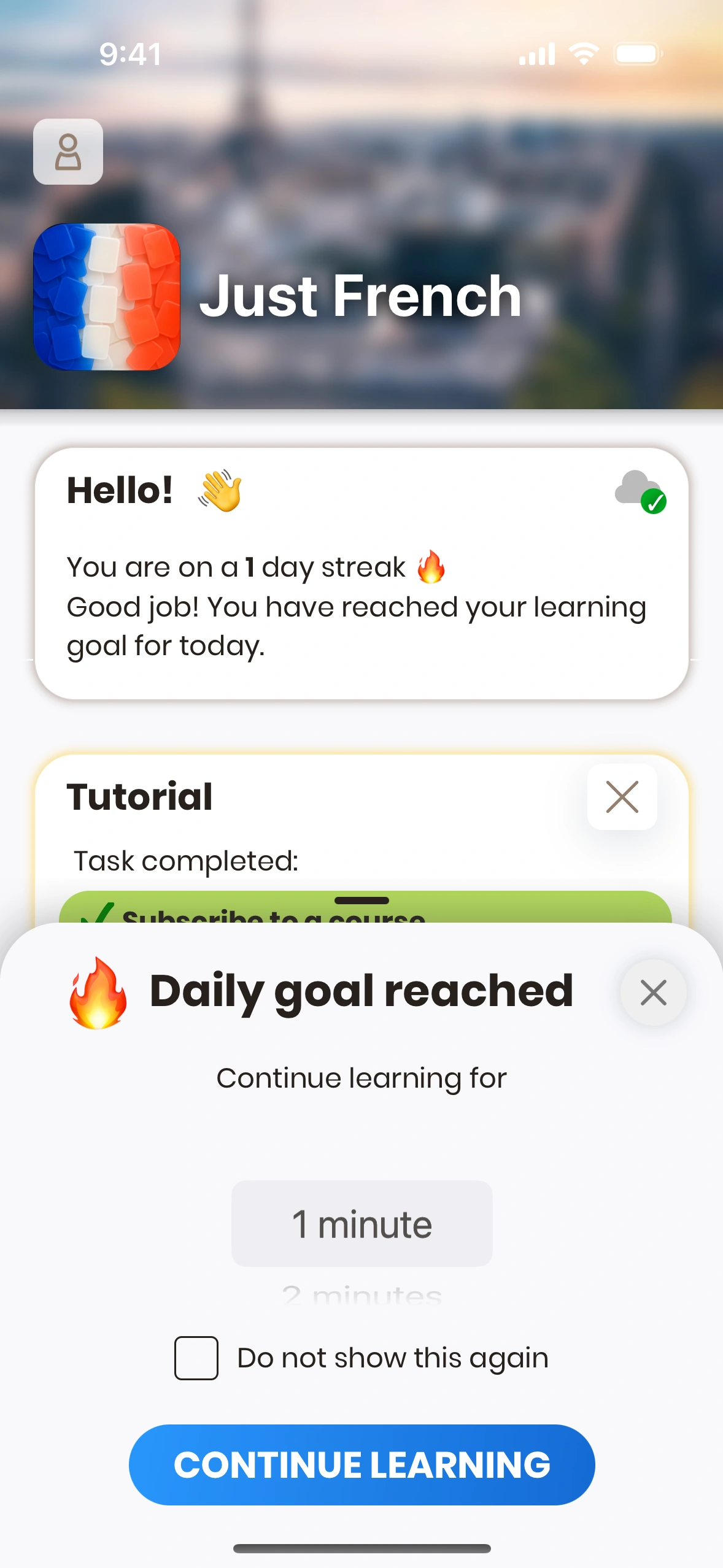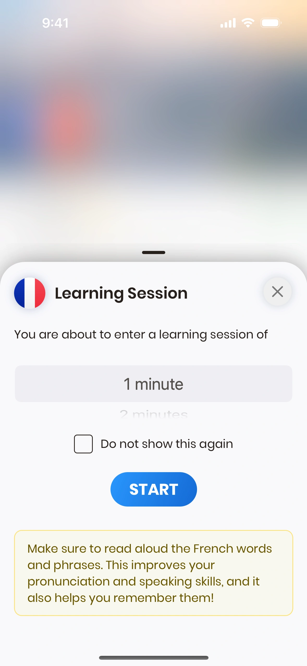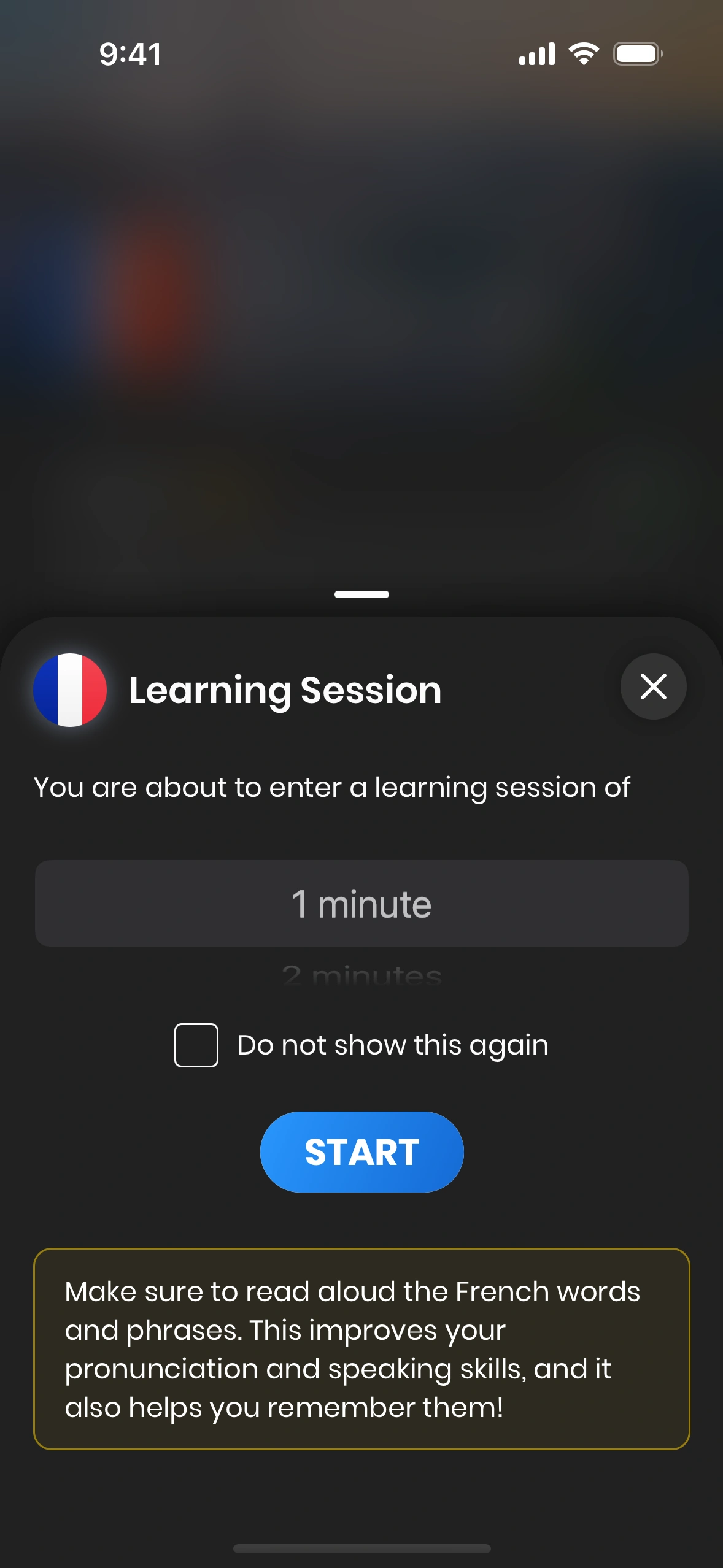 This bottom sheet can be disabled in the settings. If it is disabled, the learning session will start immediately with the default duration.