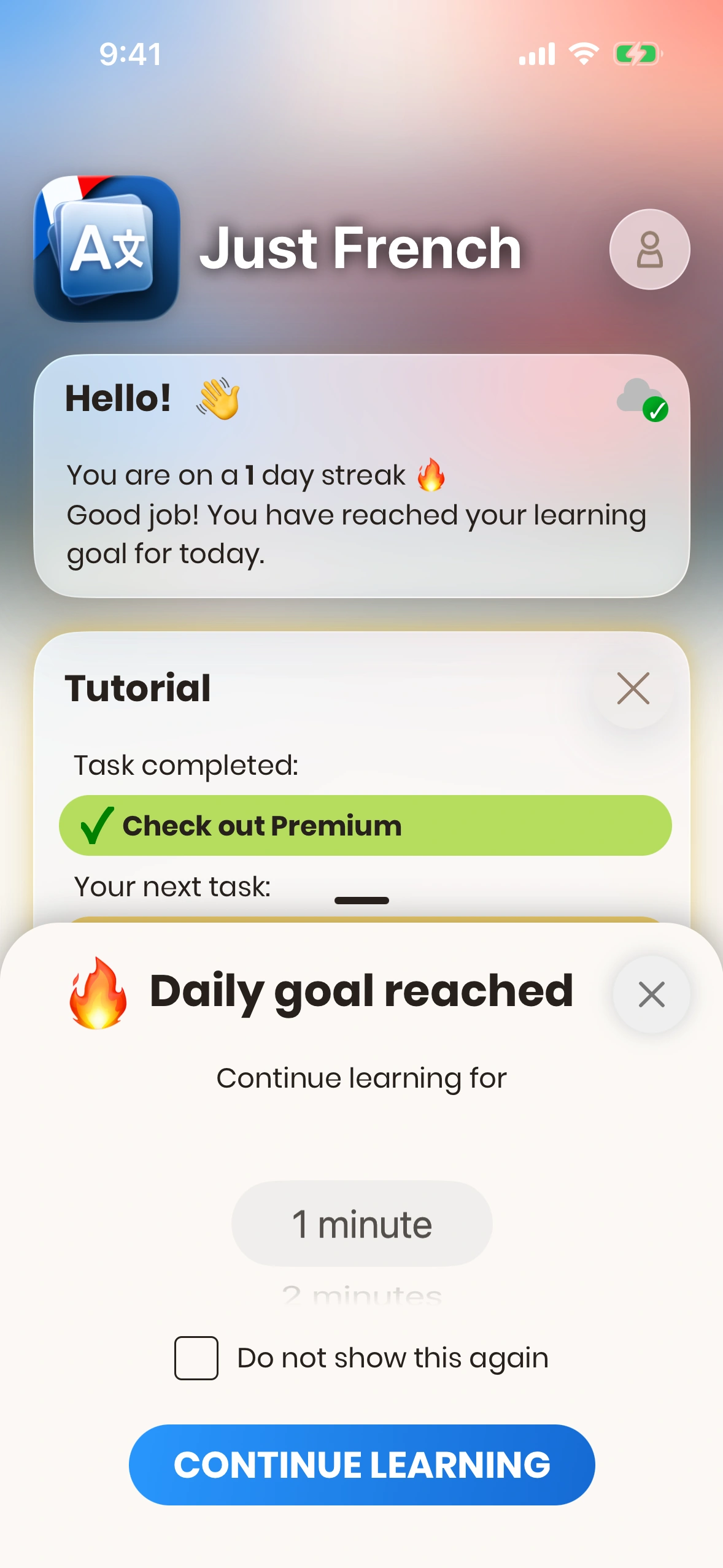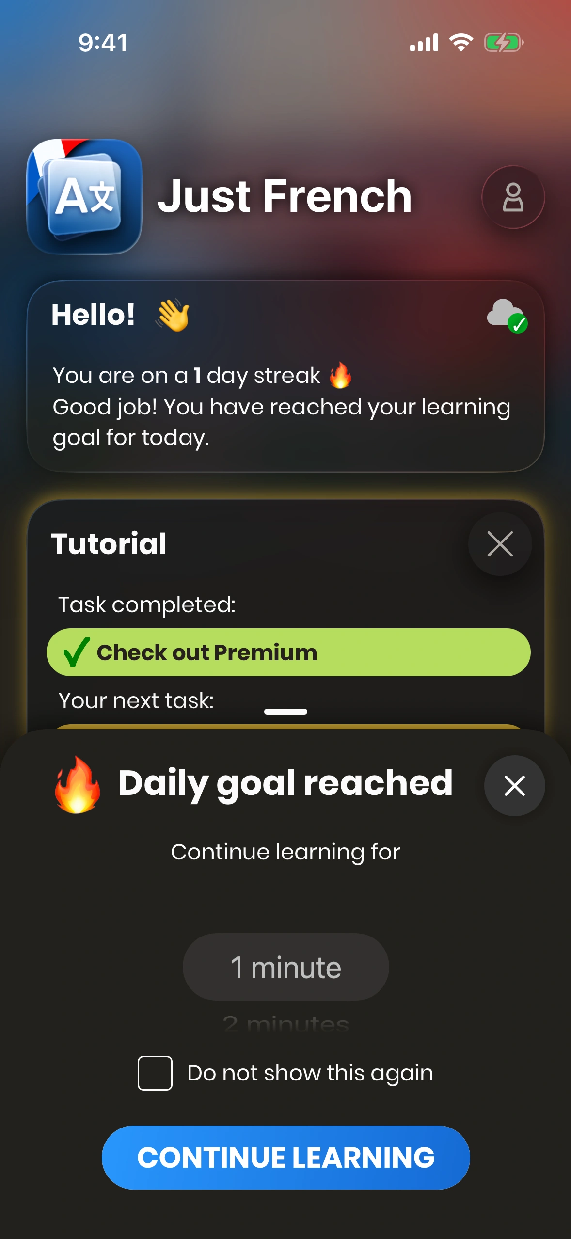 After the session has ended, you will be presented with a bottom sheet that tells you whether you have reached your daily goal or not.