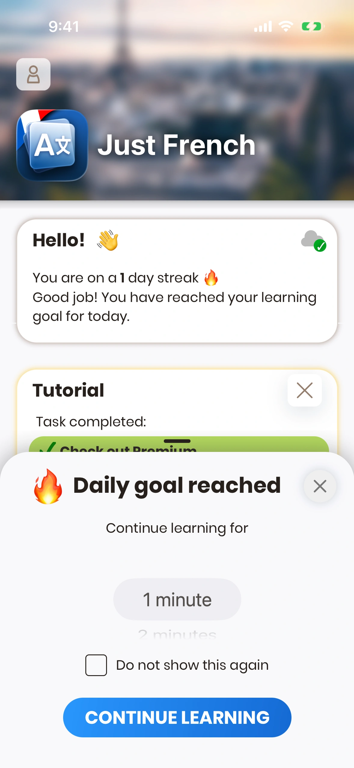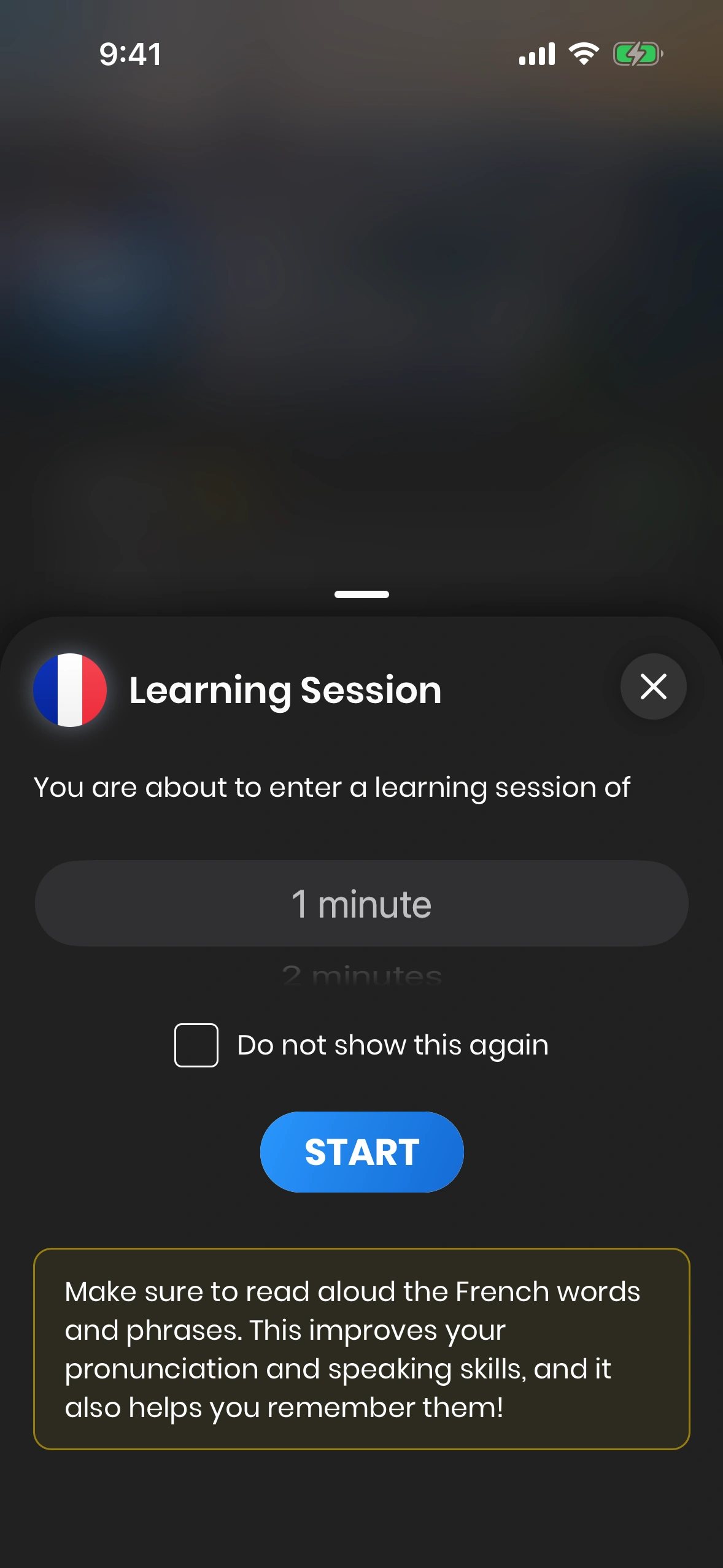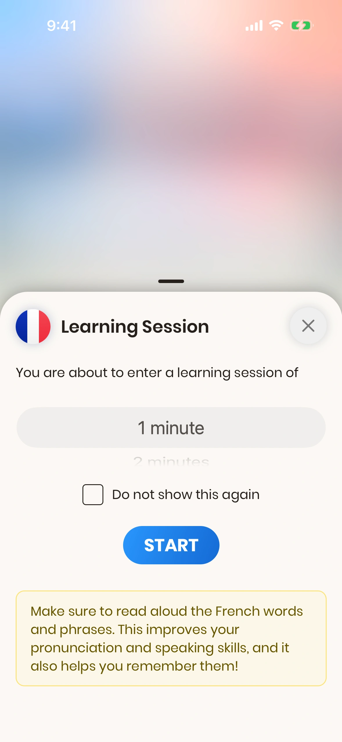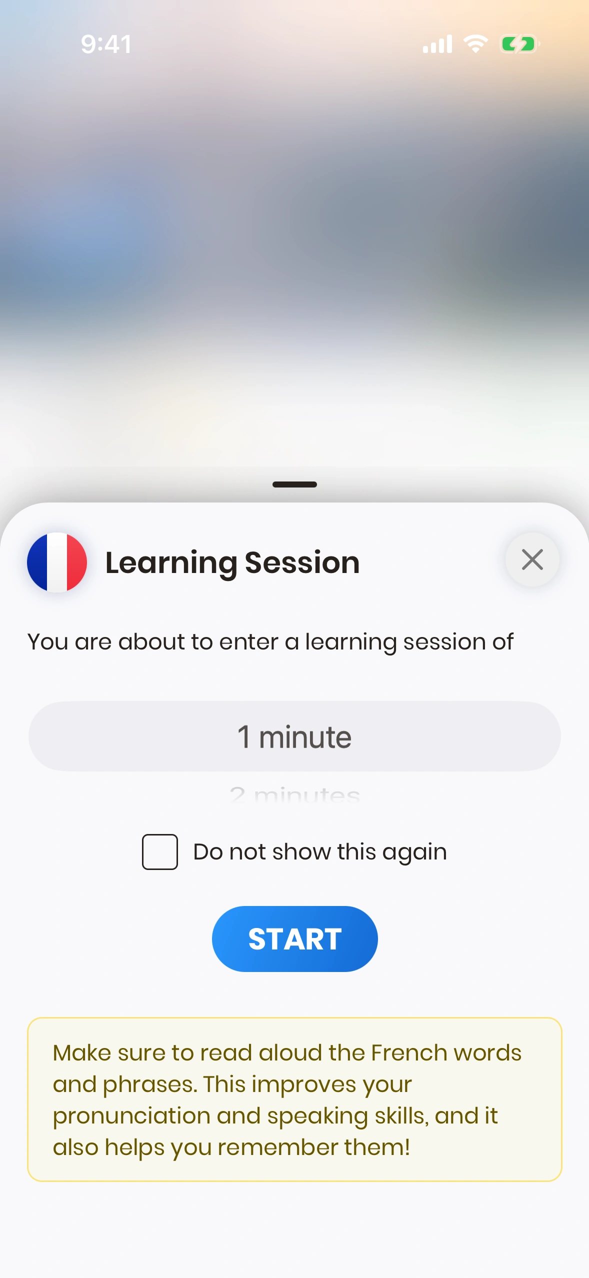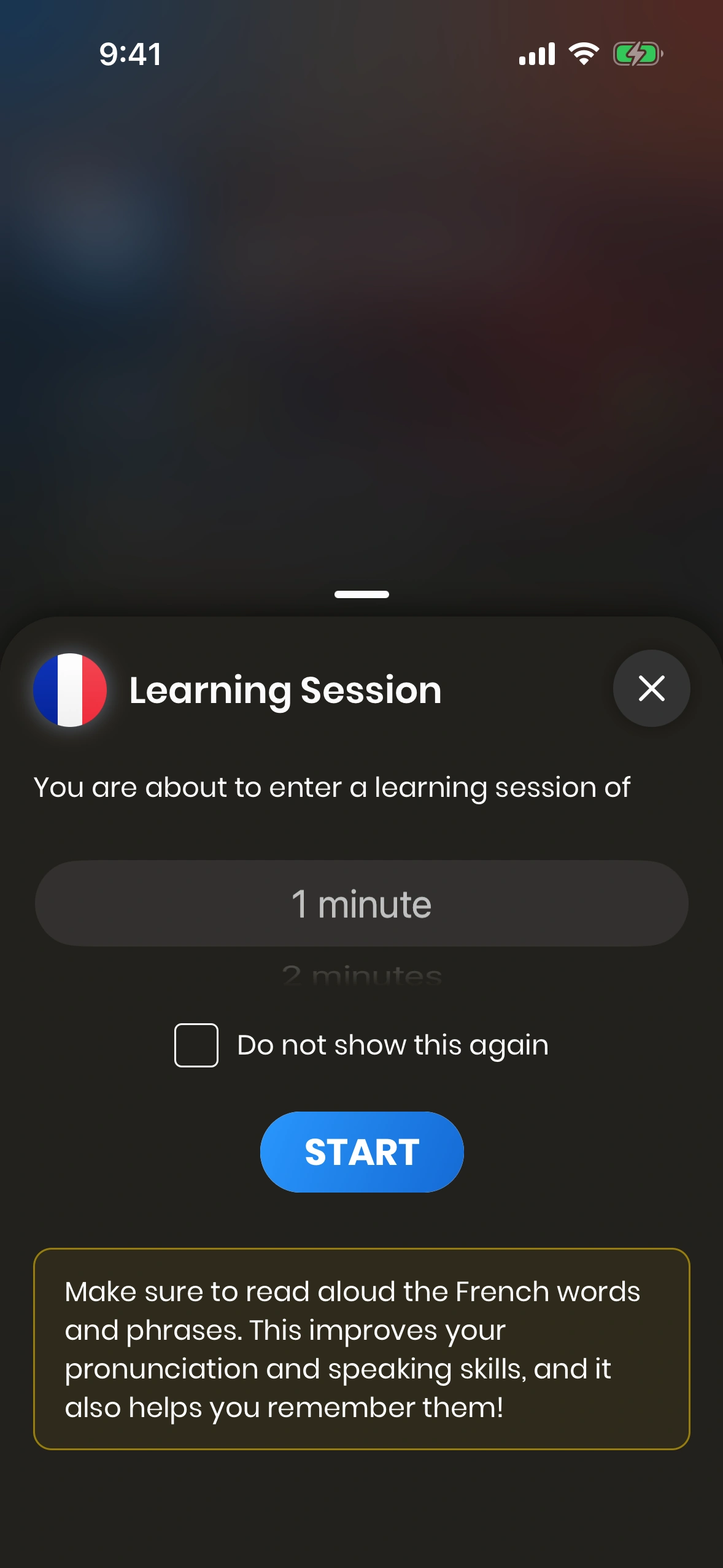This bottom sheet can be disabled in the settings. If it is disabled, the learning session will start immediately with the default duration.