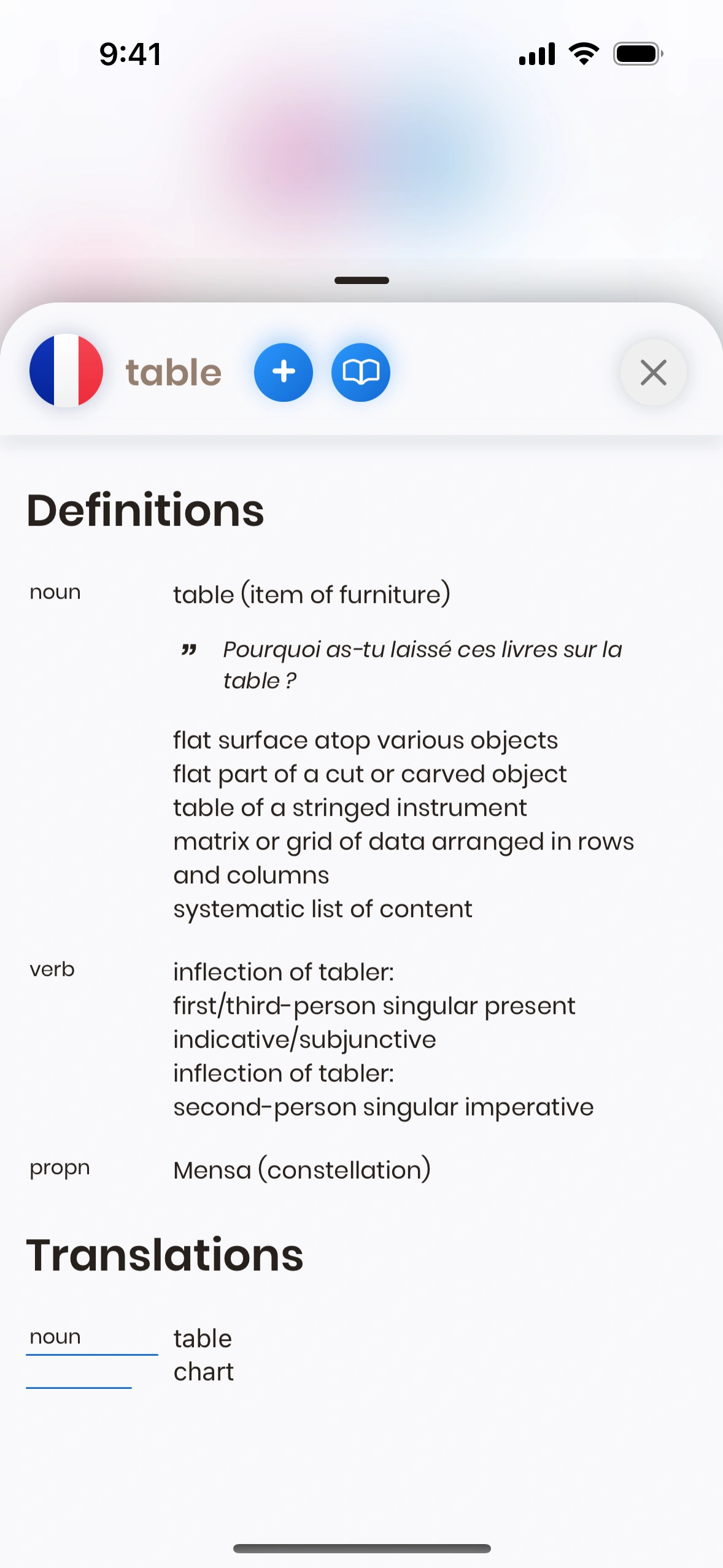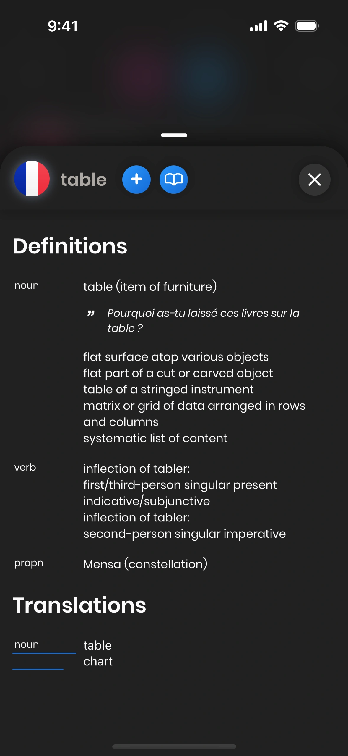 If the Add Button appears in other areas of the app, it might also offer the option "Word Details", which will show you the Word Modal (see above).