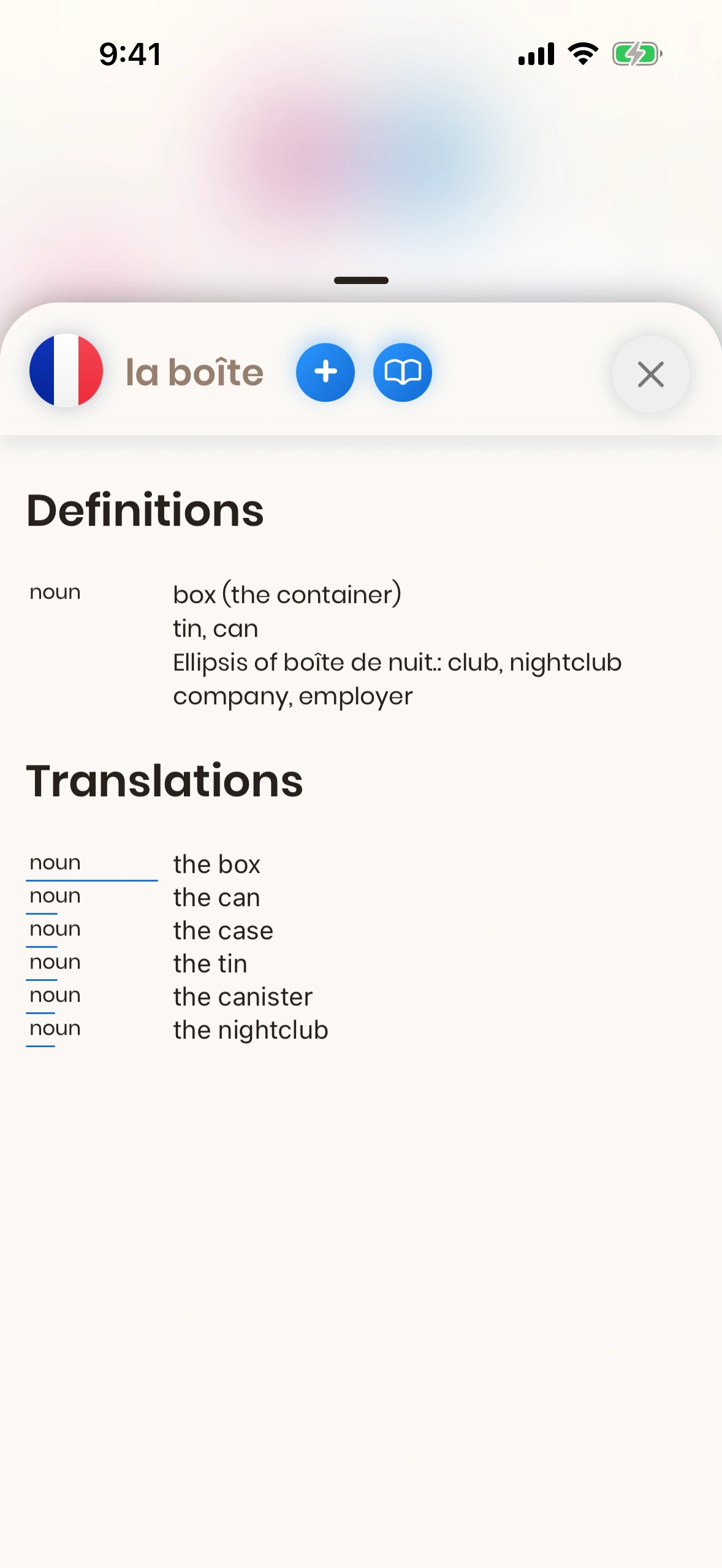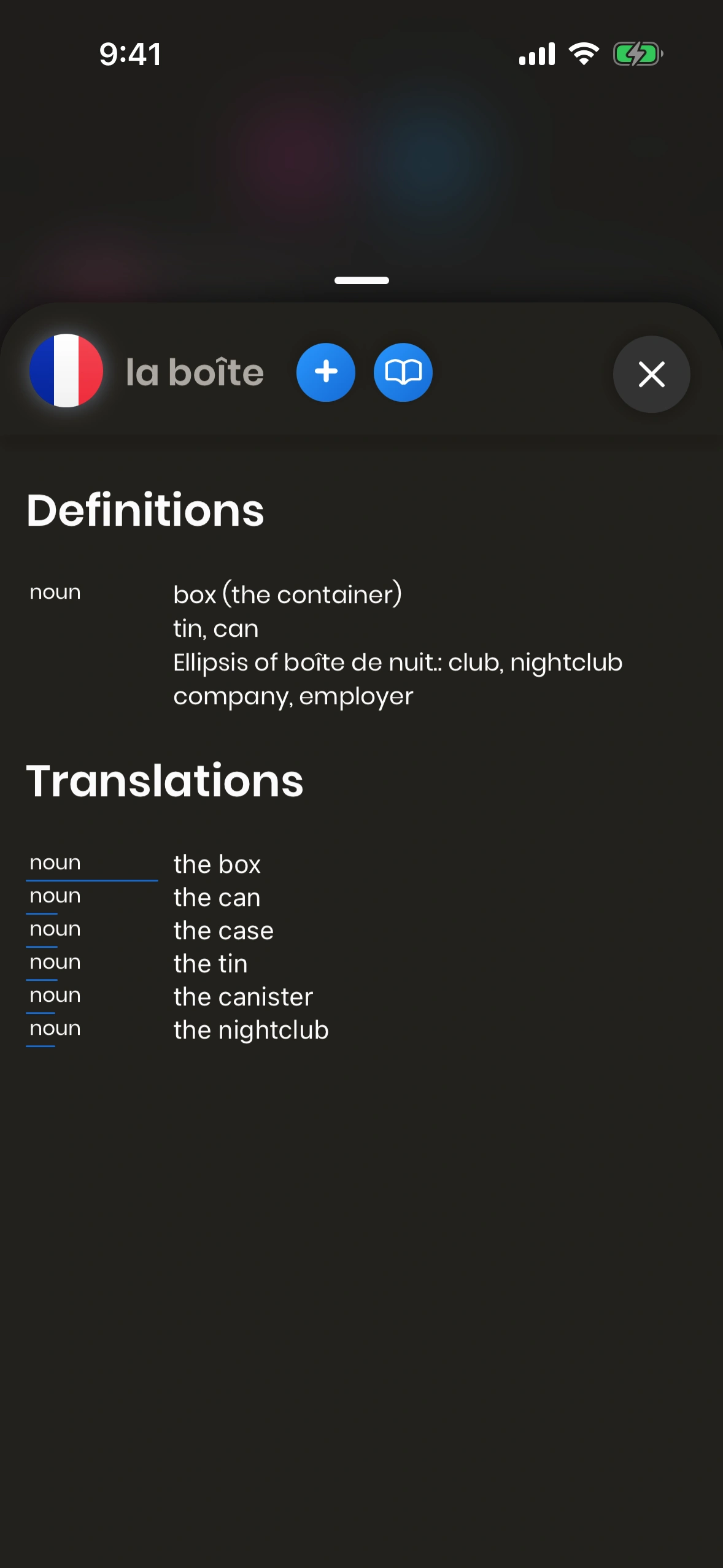 If the Add Button appears in other areas of the app, it might also offer the option "Word Details", which will show you the Word Modal (see above).