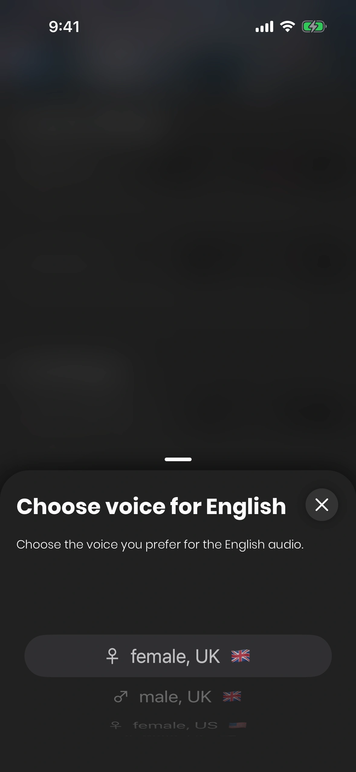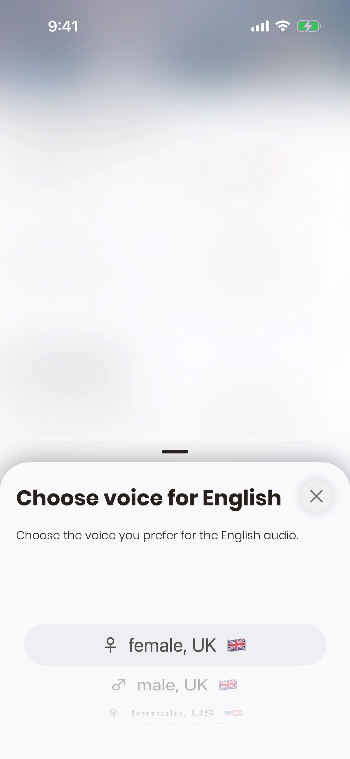 All languages are available in a female and a male voice. In addition, English can be chosen in a British or an American accent.